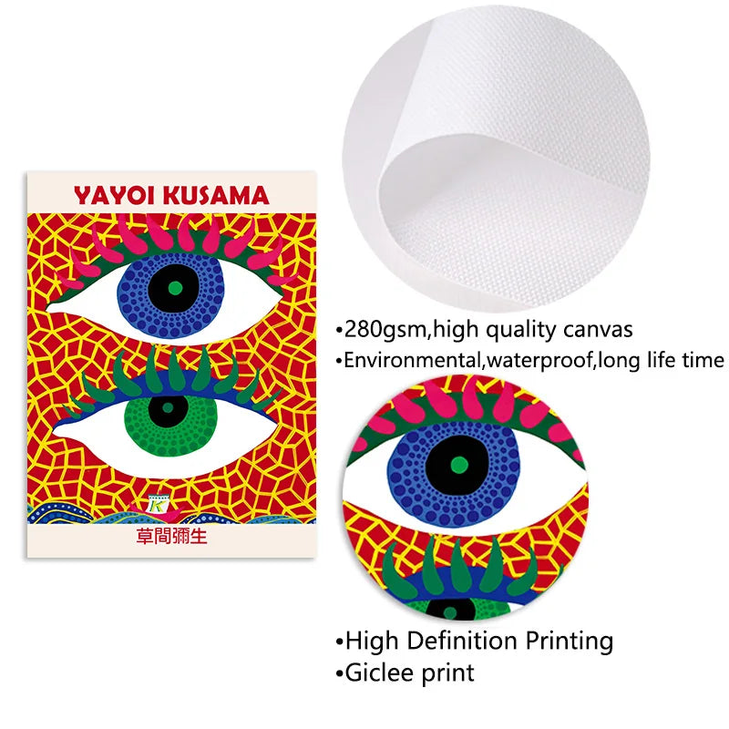 Transport your living room into an enchanting art gallery inspired by the iconic works of Yayoi Kusama. Each poster and print captures the whimsical charm of Kusama's pumpkin motifs, rendered in bold abstract forms that add a pop of color and personality to your space.